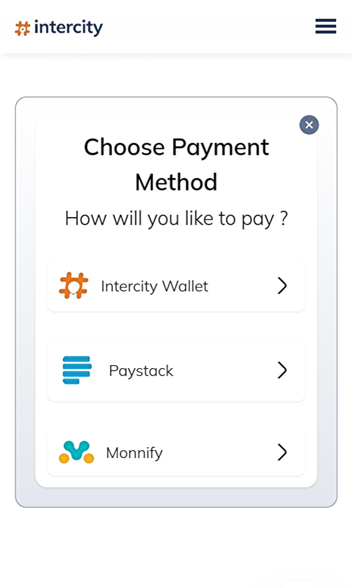 This article will help you navigate through the booking system on intercity.ng. Here are the steps to follow; STEP 1 - On the home page of intercity.ng, input from and to locations, Trip date and click on number of rides available. STEP 2 - Click on ...