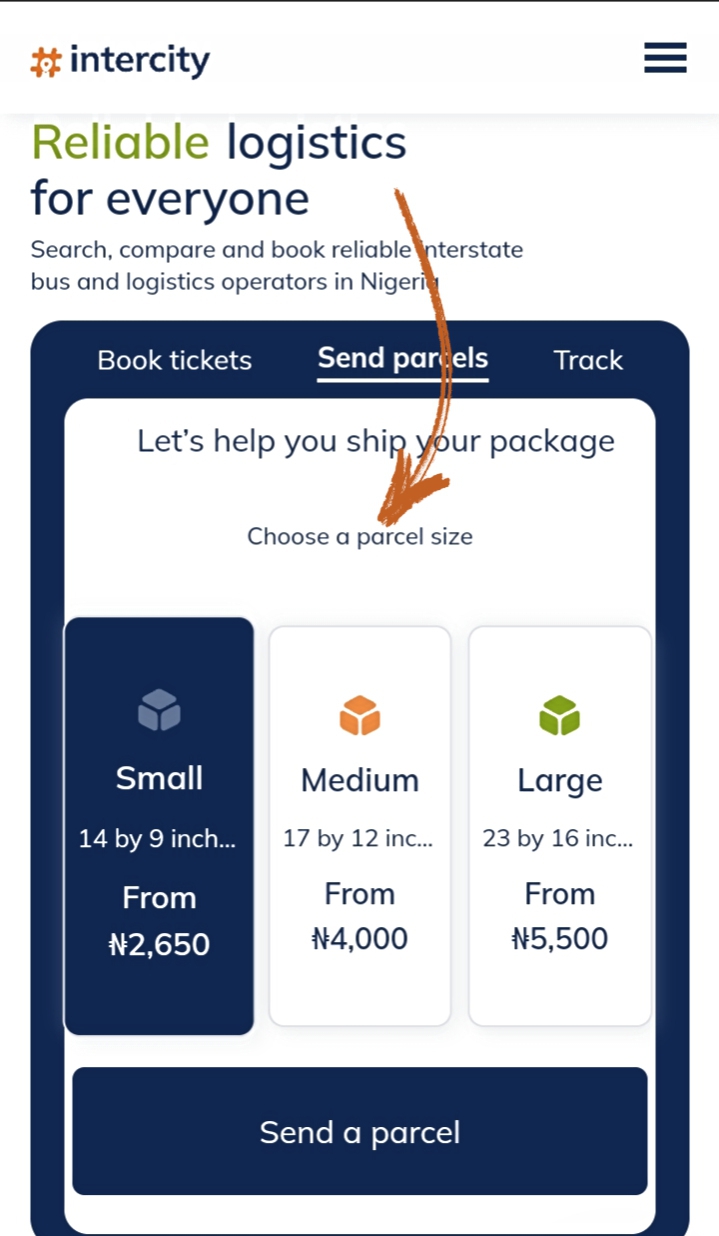 This article will help in navigating your way around the send parcel feature on intercity.ng. Follow the steps below to successfully send a parcel;